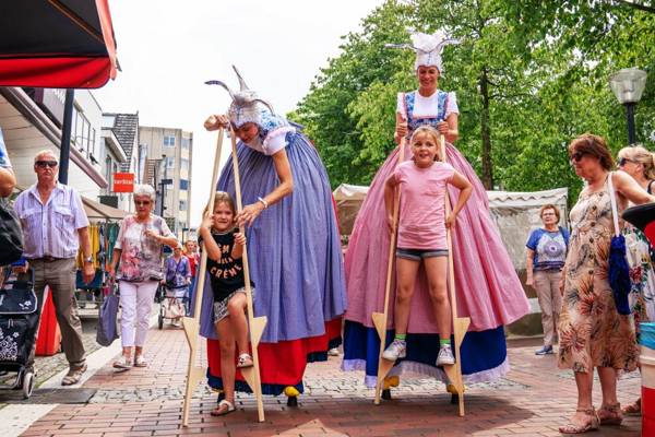 Waan je opnieuw in oude tijden, toen men nog de straten betrad op stelten, waar een ieder jong en fit bij bleef. Zelfs bij hoogwater bleven onze voeten droog! Wie kent nog: het ouderwetsch koekhappen, steltlopen en zaklopen in de straten en kinderen die nog buiten speelden. De dames van Hollandsch Glorie brengen dit straatbeeld weer helemaal terug.