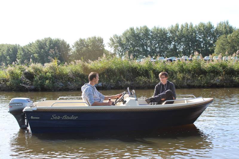 Huur deze makkelijk te varen sloep voor max 3 volwassenen. De Seafinder heeft 4 zitplekken, maar is niet geschikt voor 4 volwassenen. Een kind kan wel als 4e persoon mee. De sloep beschikt over een buitenboord motor van 8pk. Je hebt geen vaarbewijs nodig om deze sloep te huren.