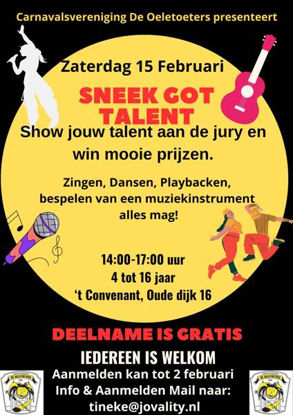 Droom jij ervan om te schitteren op het podium? Dit is jouw kans! Doe mee aan Sneek Got Talent en laat de jury versteld staan met jouw talent. Zingen, dansen, playbacken, een muziekinstrument bespelen !