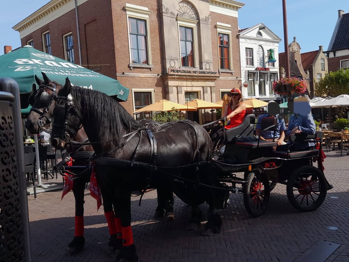 Toeristische Culturele route door Sneek met paard en wagen. Wanneer het koud is hebben we verwarmde dekens en kussens van Nikki Amsterdam voor je beschikbaar. Afhankelijk van de beschikbare paarden rijden we met 1 of 2 Friese paarden. Er wordt een route gereden van 45-60 minuten. We rijden langs historische gebouwen en hier wordt over verteld. Er is een pauzemoment ingepland zodat je een ijsje kunt kopen.