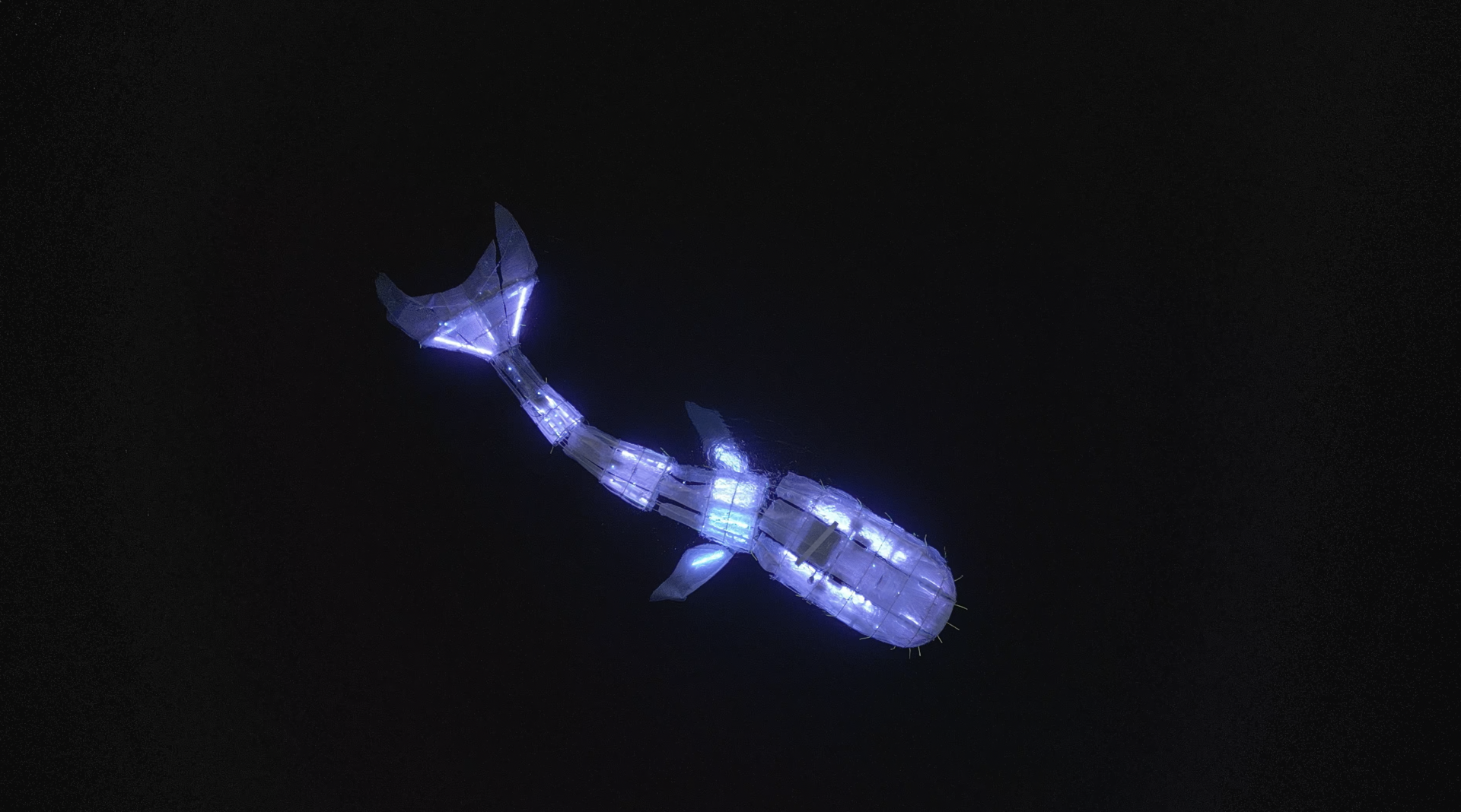 De blikvanger is Cetus, een zes meter lange lichtwalvis van het Berlijnse collectief Loomaland. Hij glijdt door de gracht bij de Bothniakade, transparant en lichtgevend. Soms spuit hij onverwacht een straal water de kade op. Zijn aanwezigheid verwijst naar eeuwenoude zeemansverhalen over mysterieuze wezens uit de diepte.