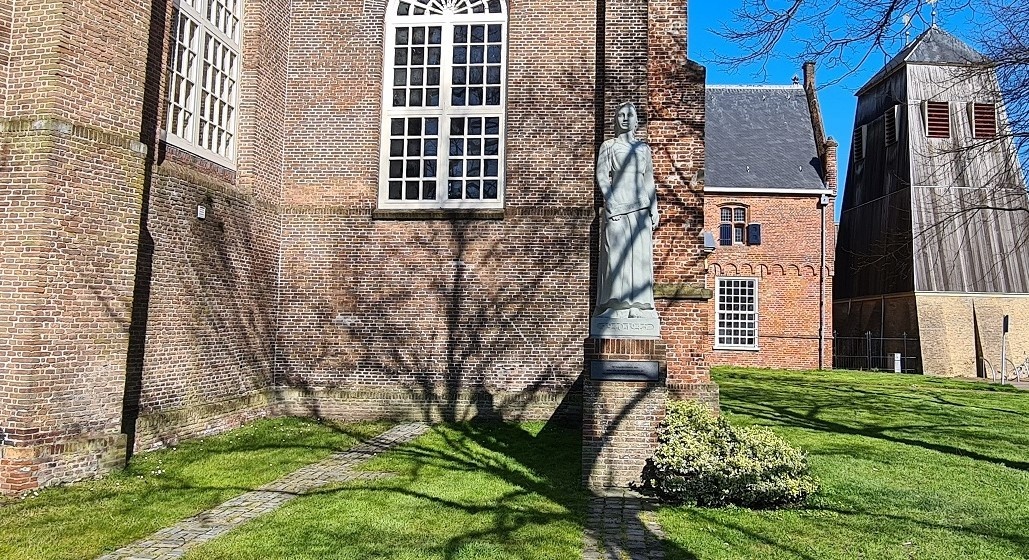 Das vom Architekten Arjen Goodijk zusammen mit seinem Schwager, dem Bildhauer Willem Valk, entworfene Denkmal stellt eine stehende Frau mit einem Ehrenband auf einer bogenförmigen Backsteinmauer dar. Die Statue steht neben der Grote- oder Martinikirche in Sneek und ist aus französischem Kalkstein (Vaurion) gefertigt. Das Ehrenband trägt die Aufschrift: TREU BIS IN DEN TOD. Darunter auf dem Sockel der Statue: 1940 - 1945. Unterhalb der Statue sind mehrere Tafeln an der Wand angebracht, darunter eine zum Gedenken an die Opfer der Sneker Blutnacht. Die Statue wurde am 4. Mai 1950 von Meta Lever enthüllt, die ihren Vater und zwei Brüder im Zweiten Weltkrieg verloren hatte. Der weiche Kalkstein wurde im Laufe der Jahre beschädigt. Im April 2018 wurde die Statue daher durch eine Nachbildung aus Granit ersetzt.