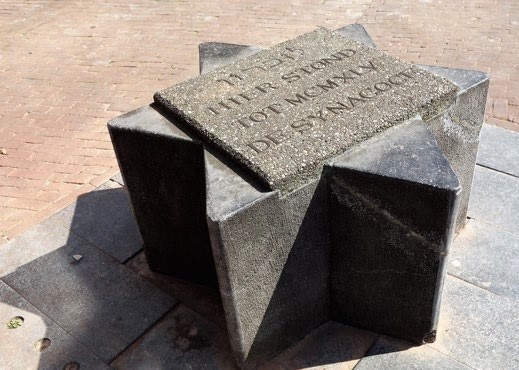 Am 4. Mai 1972 verlegte Oberrabbiner E. Berlinger eine Gedenkplatte in der Wijde Burgstraat. Die Platte wurde in der Nähe der Stelle verlegt, an der die jüdische Synagoge von Sneek gestanden hatte. Diese Synagoge wurde am 3. November 1944 bei einer Razzia zerstört. Auf der Gedenkplatte steht auf Hebräisch 'Zum Gedenken' und 'Hier stand die Synagoge bis 1945'. Beim Wiederaufbau der Wijde Burgstraat im Jahr 1985 wurde die Fliese auf einen Sockel gesetzt. Dieser Sockel hat die Form eines Davidsterns.
