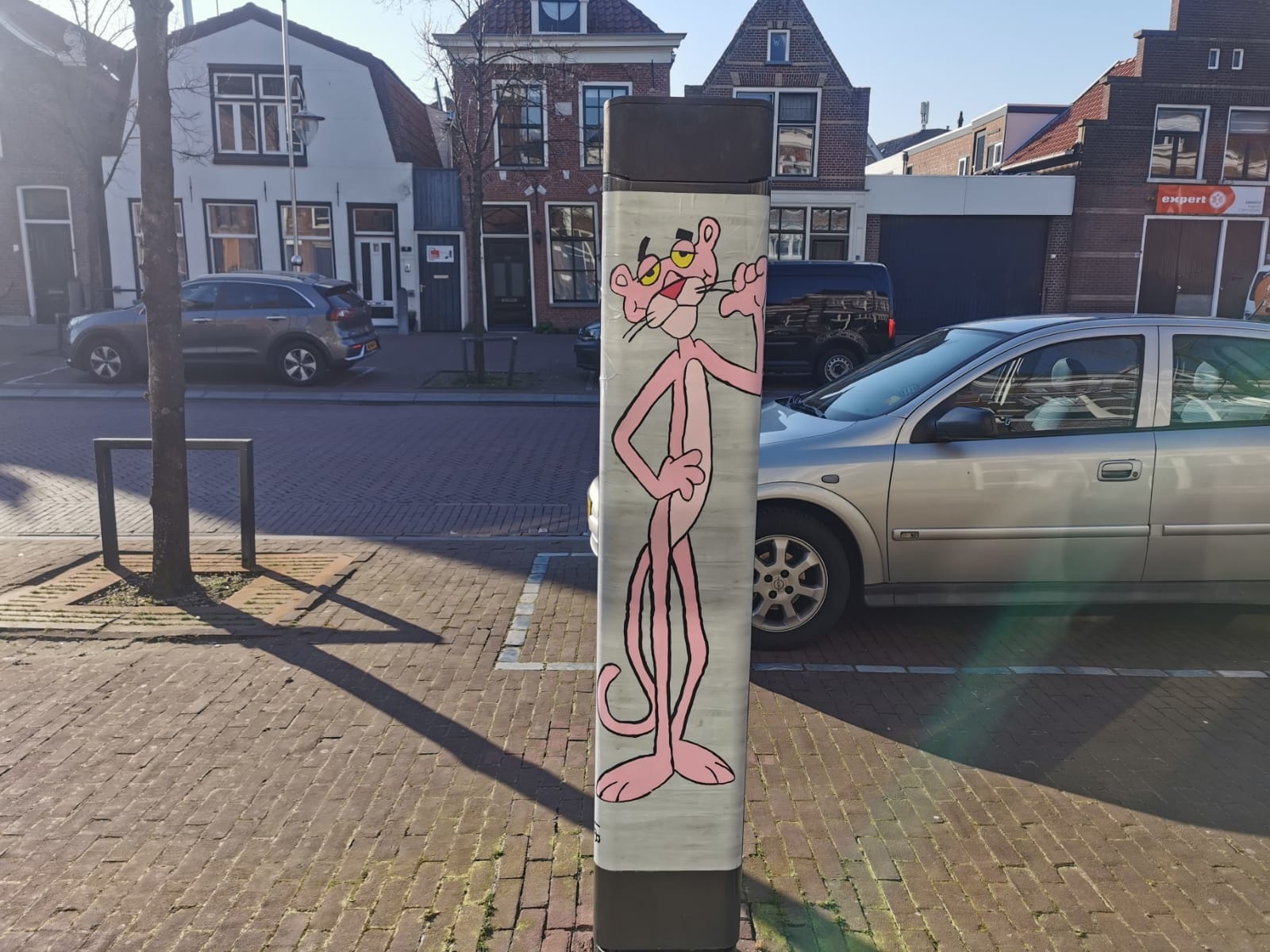 Der rosarote Panther ist eine Filmreihe über den französischen Inspektor Clouseau. Inspektor Clouseau ist nicht der rosarote Panther. Der rosarote Panther ist eigentlich ein wertvoller Diamant. Es heißt, wenn man sein Herz aus der Nähe betrachtet, sieht es aus wie ein rosaroter Panther. Das wird am Anfang des ersten Films erklärt. Später wurden auch Zeichentrickfilme über den rosaroten Panther gedreht, wie der, den Sie hier auf dem Bild sehen. Zu den Filmen wurde auch ein berühmter Soundtrack geschrieben: