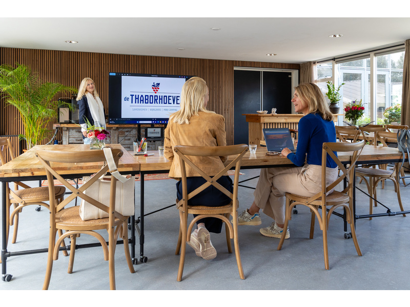 Im Thaborhoeve kann der Glassaal für kleine Veranstaltungen für 15–55 Personen gemietet werden. Nur 20 Minuten von Leeuwarden entfernt können Sie hier Tagungen und Empfänge mit herrlichem Blick auf die friesische Landschaft abhalten. Bei schönem Wetter genießen Sie ein köstliches Mittagessen auf der Terrasse oder im Weinberg.
