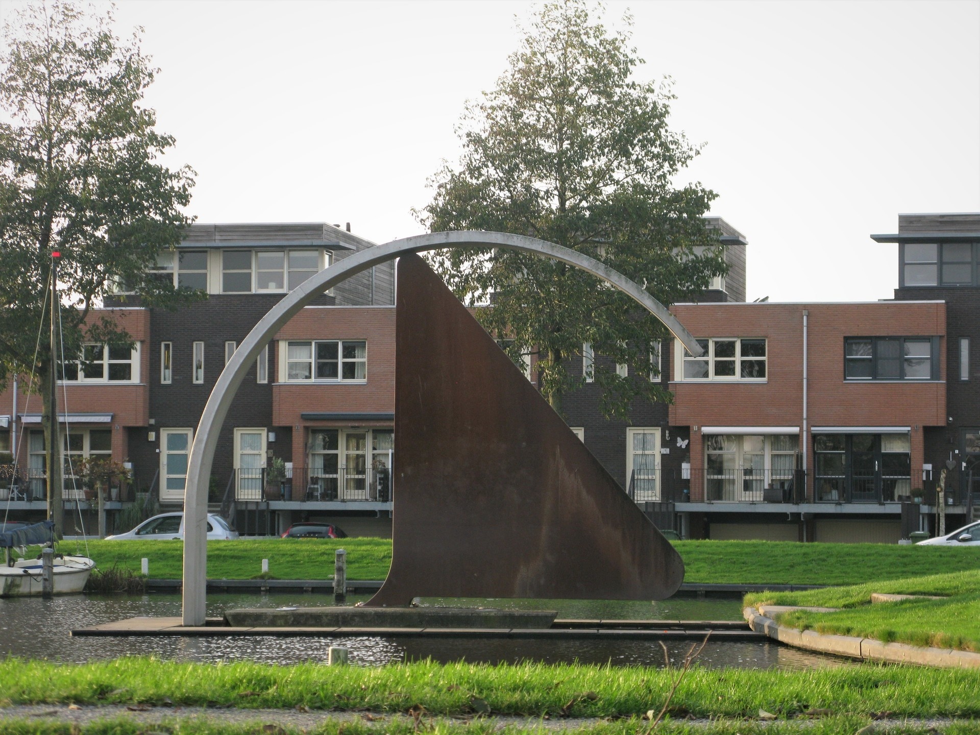 On November 15, 2007, the artwork 'Breakwater'was unveiled at the Parelmoervlinder/ Atalanta. In 2005, Renate de Boer and Dorieke Dijkstra won a competition held by Wetterskip Fryslân, in cooperation with several municipalities. Wetterskip Fryslân, together with the former municipality of Sneek, placed the artwork in the sustainable neighborhood Duinterpen because De Golfbreker symbolizes the experience of water in the living environment. The artwork consists of a boat being swamped by a large wave. Renate and Dorieke explain that the boat stands for the land protected by the dikes. "The arch is a dike that protects the land. You can also see the arch as a wave that washes over the land when the dikes can no longer hold." Water flows out of the arch. A large solar panel provides the necessary energy. In addition, special low-energy lamps have been used to illuminate the artwork. The former Sneek city council deliberately chose Duinterpen for placement of The Breakwater, because sustainability was a high priority in the construction of this area. The bar is also high in terms of the quality of the spatial design. This combines well with the way in which De Golfbreker came about.