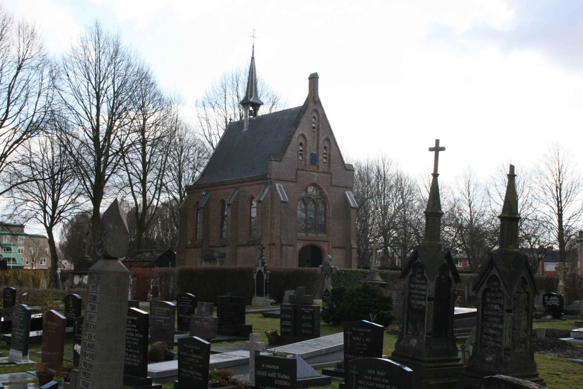 The chapel belonging to the complex of the cemetery of the Roman Catholic St. Martinus Church in Sneek is located in the south-east corner of the grounds and faces northwest. The designer of the chapel was architect J.W. Boerbooms of Arnhem, who also designed the gravedigger's house, the entrance gate and the masonry base of the Calvary. Contractor for the construction of the chapel was J. van der Steele of Sneek, who delivered the work for f 10,150. In December 1892, the chapel was completed. The gable stone, placed in the east facade, reads "Th.B. 18 15/9 92" to commemorate the laying of the first stone by pastor-dean Theodorus Brouwer. Pastor Brouwer was a member of the St. Bernulphus Guild, which favored the use of the neo-Gothic style.