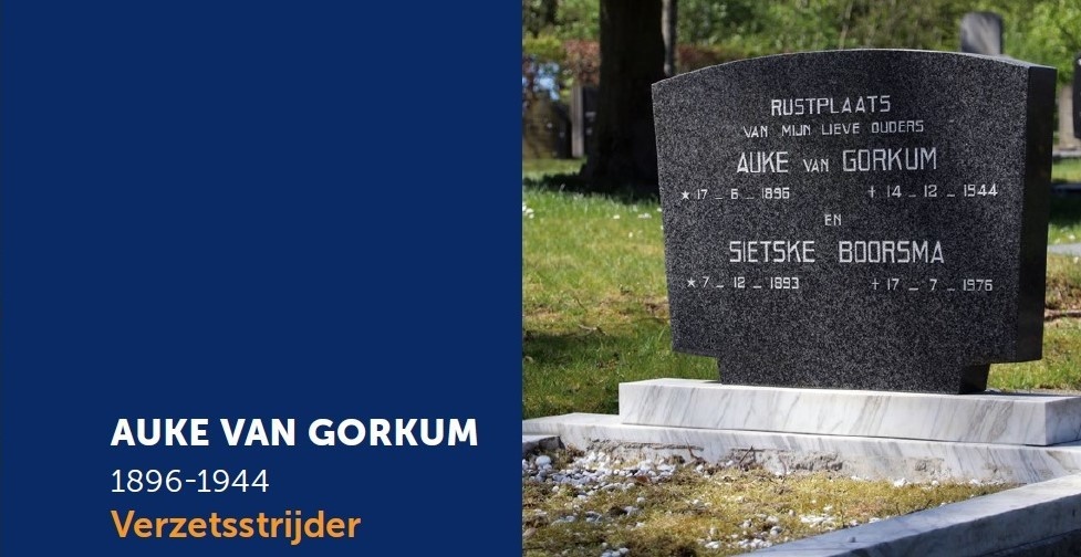 On October 5, 1944, Auke was clearing a house of a wanted resistance fighter when he was arrested. Auke was transferred to Leeuwarden, where he was severely beaten during interrogations. According to family tradition, Auke van Gorkum died of heart failure while riding his bicycle home from Appingedam.