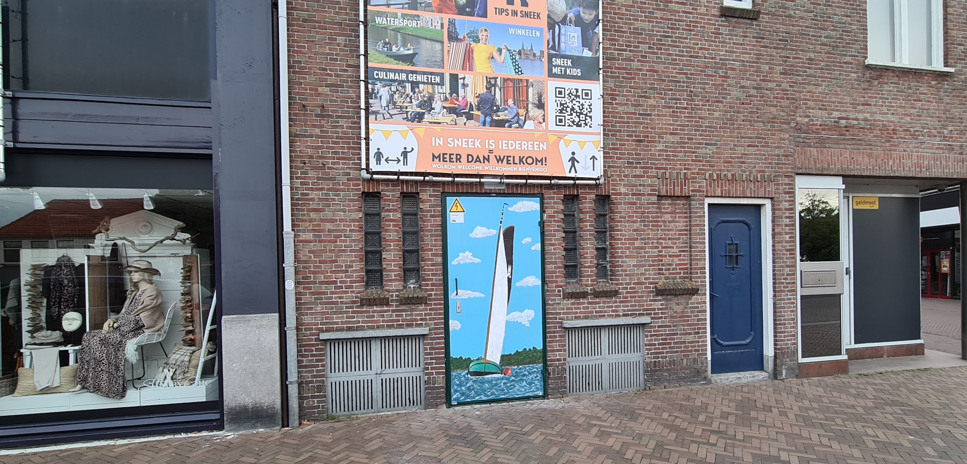 A hand-painted artwork of skûtsje De Sneker Pan by visual artist Loes de Bruin has been installed on the power cabinet door at Jousterkade 1.