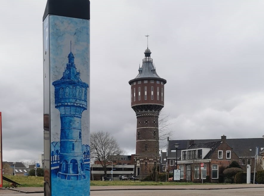 Streetart item 'Watertoren 2.0' overlooks the real Watertoren on Lemmerweg.