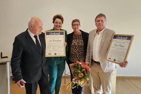 Met hun jarenlange inzet en warme betrokkenheid hebben Jan Brandsma en Kees Poiesz het hart van Sneek mede gevormd. Hun inspanningen verdienen dan ook deze terechte waardering.