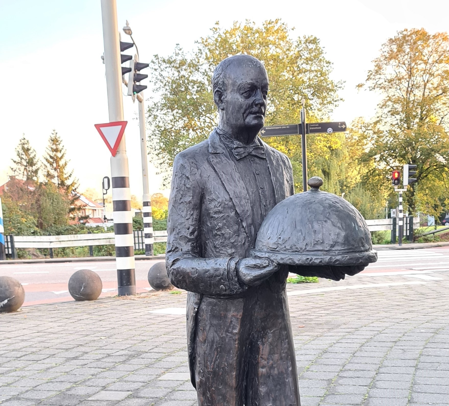Model voor het standbeeld was Leo Reijs, maître d'hôtel geweest van het befaamde restaurant Excelsior van hotel de l'Europe in Amsterdam. De initiatiefnemer voor dit beeld was Jaap Piso, de laatste van drie generaties horeca-ondernemers van café restaurant Piso in Sneek. Zijn bedrijf maakte - bij gebrek aan opvolging - plaats voor de nieuwbouw van de Amrobank. Hij wilde, als eerbetoon aan het gastheerschap en herinnering aan zijn bedrijf een standbeeld laten vervaardigen van een gastheer. Daarbij viel zijn keuze op Leo Reijs, bij wie hij eens gedineerd had. Zijn stijlvolle verschijning heeft hem geïnspireerd om een beeld van een gastheer in rokkostuum te laten ontwerpen. Helaas mocht de heer Piso de verwezenlijking van zijn idee niet meer meemaken. Het beeld is onthuld door de heer Van der Zee, een familielid van Jaap Piso, in aanwezigheid van toenmalig burgemeester Hartkamp.
