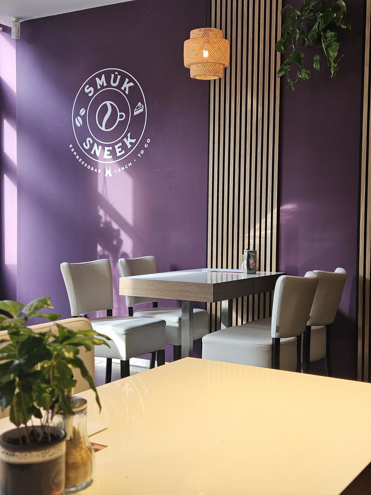 Voor wie onder het genot van een goede koffie zijn e-mail wil checken of een plek zoekt voor een (zaken)lunch, beschikt SMUK over voldoende werkplekken, gratis WiFi en voldoende stopcontacten! Door de diverse hoogtes en zitjes wordt er een woonkamer gevoel gecreeerd, die perfect is om bij te kletsen onder het genot van een heerlijke koffie, cappuccino met wat lekkers erbij of van onze heerlijke lunch!